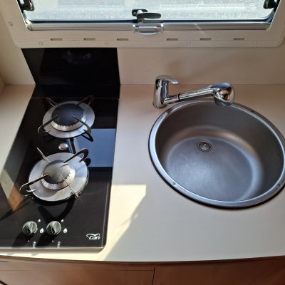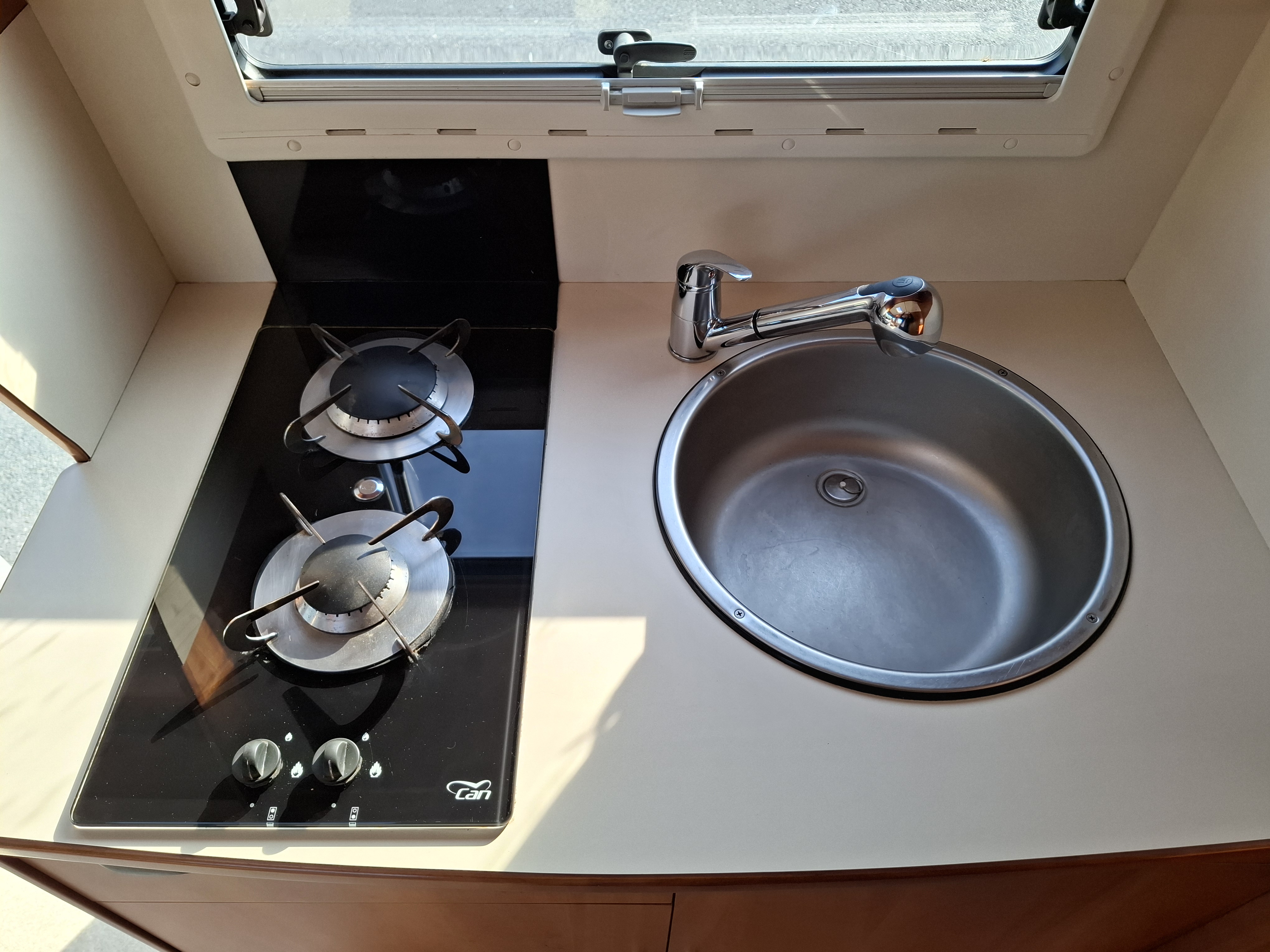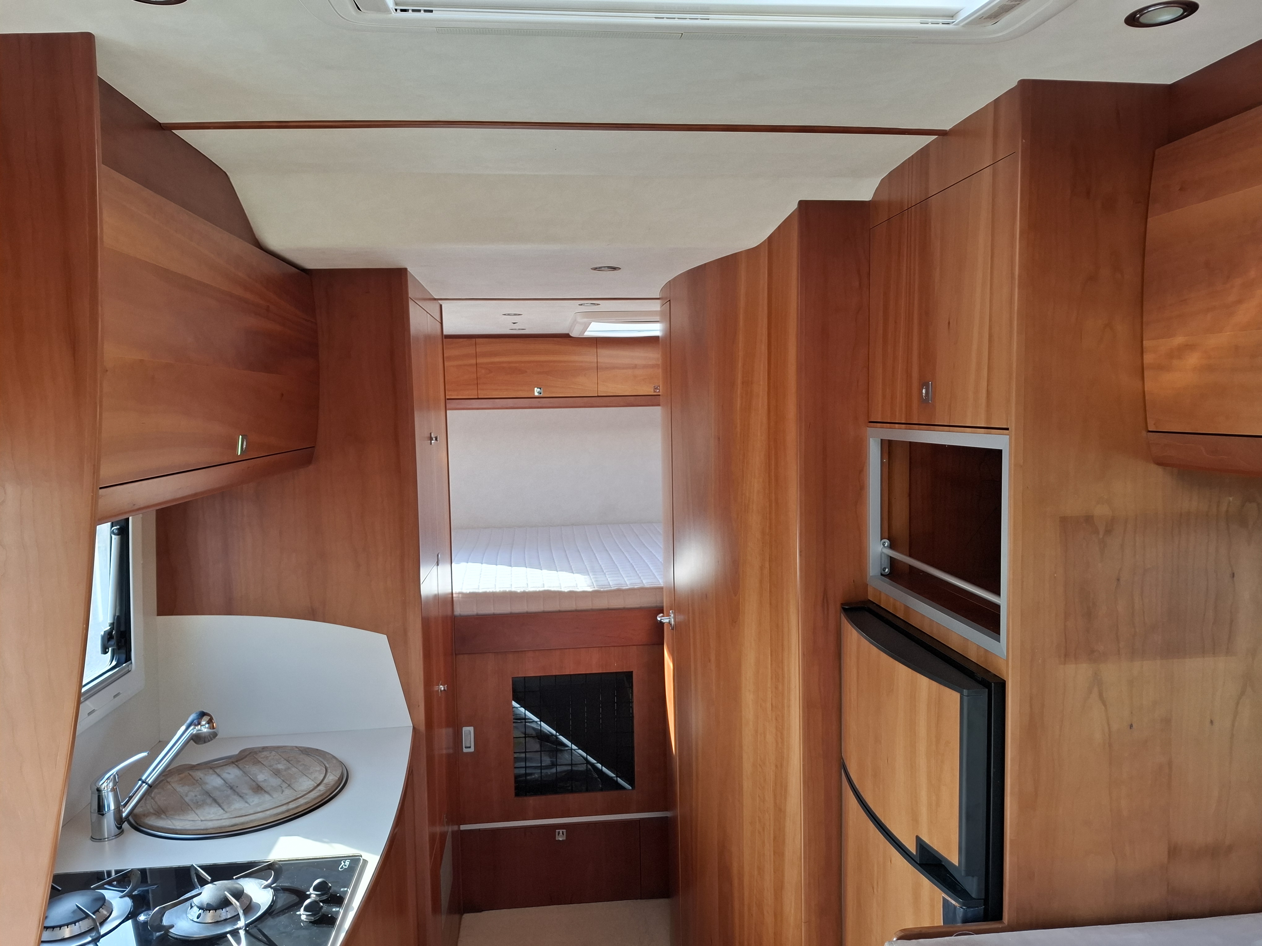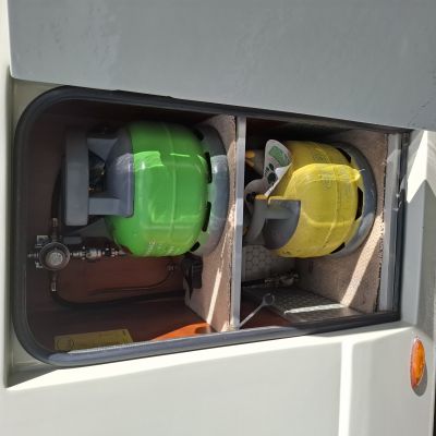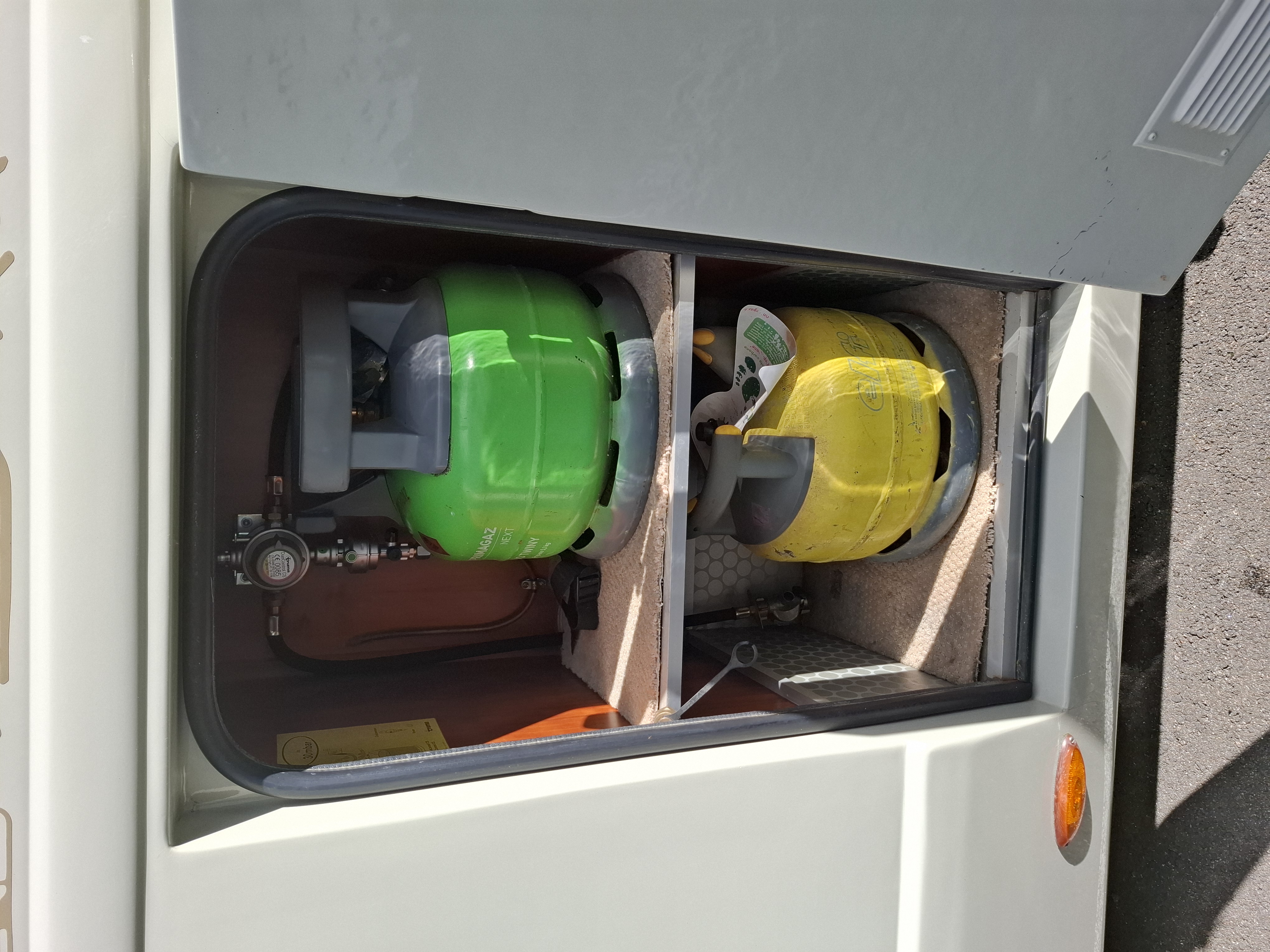 Chauffage Truma Combi D6 Cp Plus gasoil + kit altitude, 2 batteries AGM 114Ah, 1 panneau solaire (120W), réservoir d’eaux propres 160L et réservoir d’eaux usées 100L en polyester moulé dans la cellule, compartiment gaz pour 2 bouteilles de 6kg avec système inverseur automatique Duo Control.