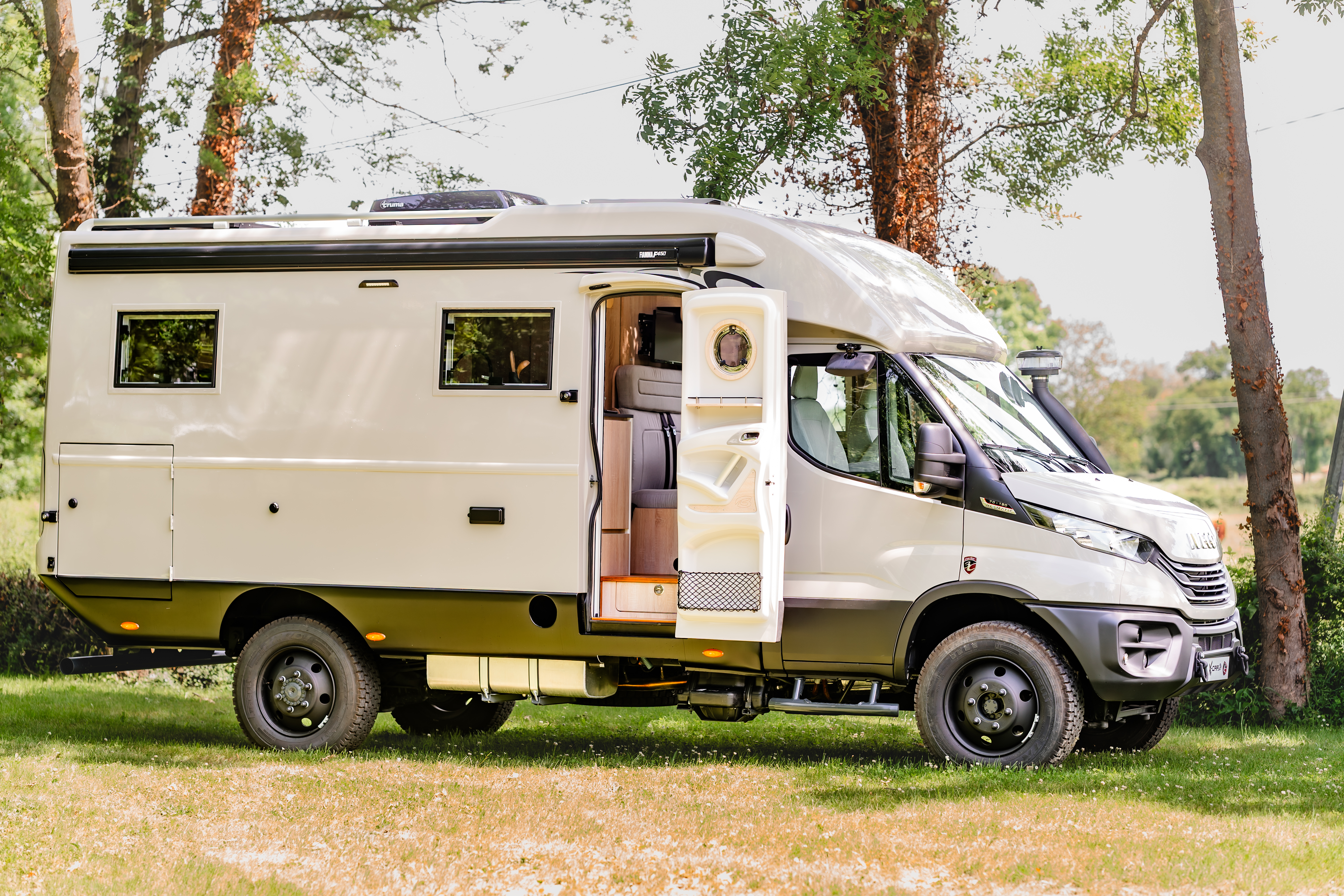 Découvrez un des véhicules de notre fabrication : le camping-car tout terrain aménagé par nos soins dans une cellule X-Cap de 3C Cartier sur un porteur IVECO. Article à découvrir
