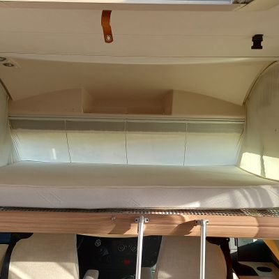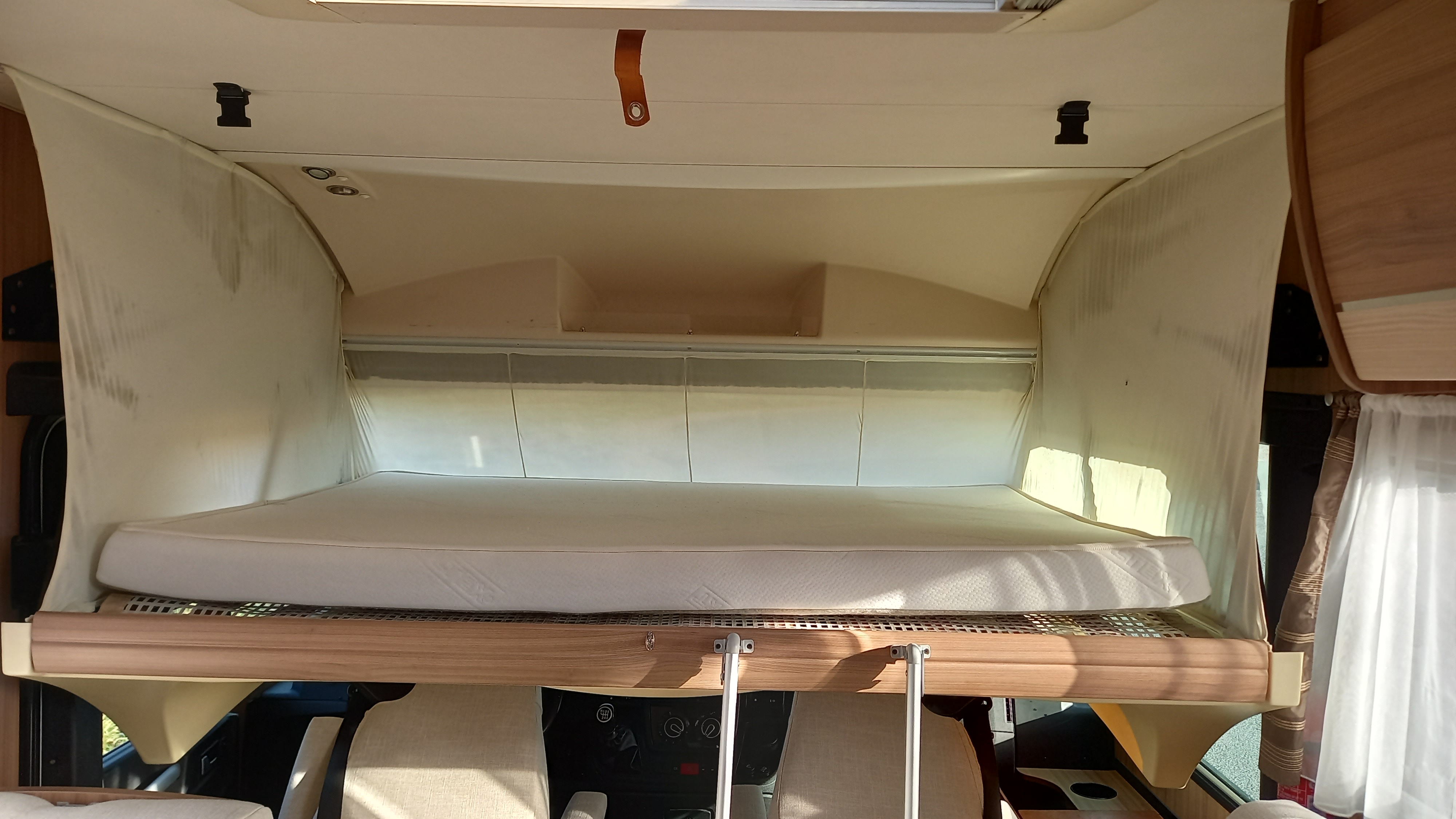 Lit de pavillon escamotable manuel (130x190) pour 2 personnes à l’avant.