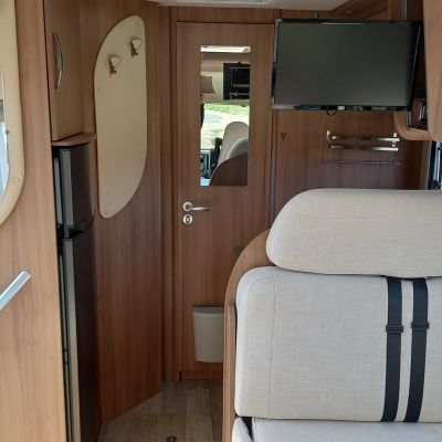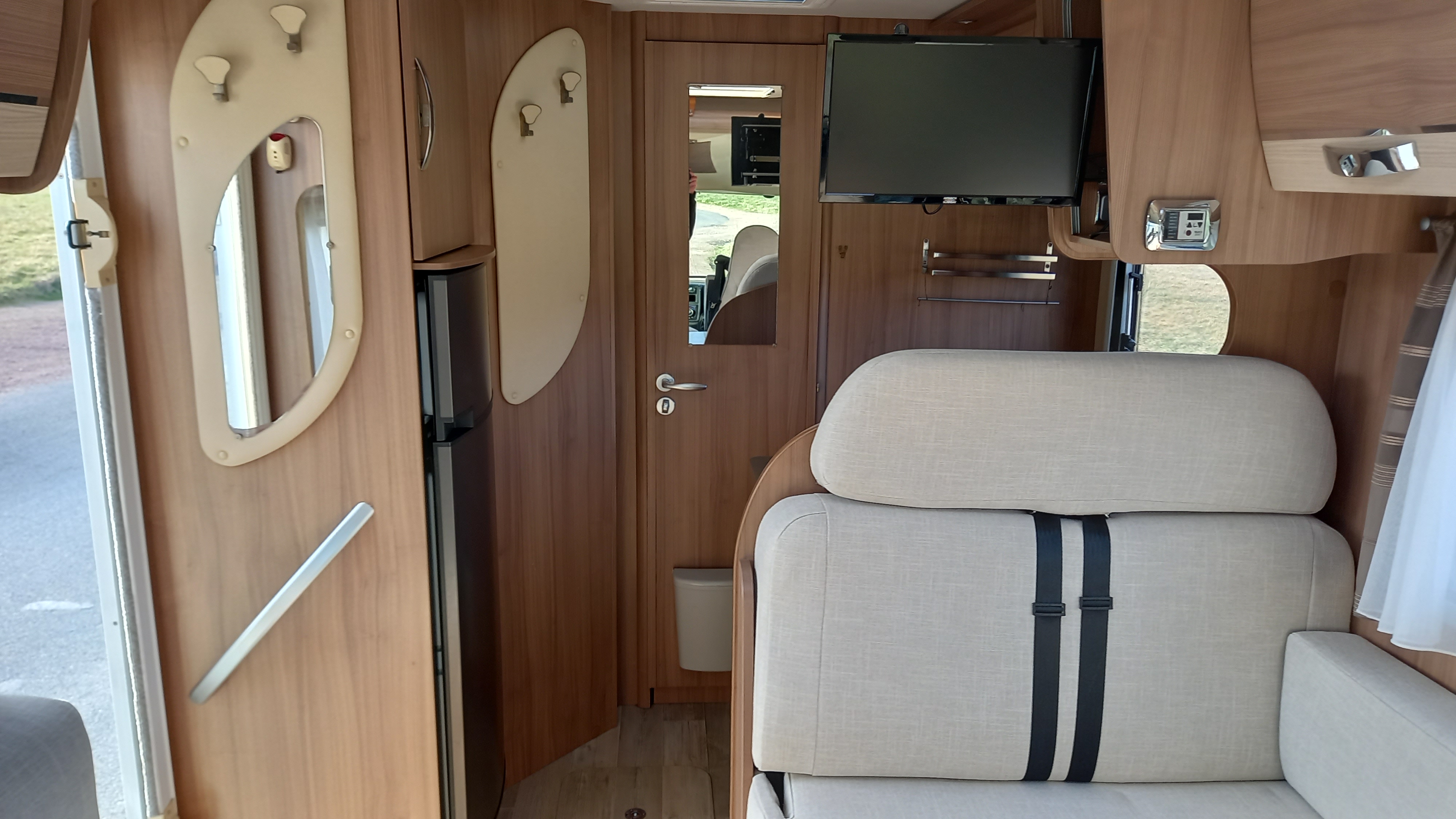 Eclairage extérieur, marchepied manuel, store de cabine occultant, moustiquaire de porte, antenne satellite automatique ,TV, panneau solaire, chauffage/chauffe-eau TRUMA C4 Gaz, compartiment gaz pour 2 bouteilles de 13Kg avec inverseur automatique (1 bouteille Gaz et 1 GPL Borel), batterie AGM 95Ah, porte-vélo (2V), réservoir d’eau propre 130L et d’eaux usées 95L.