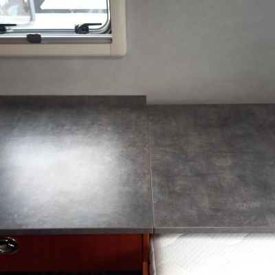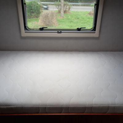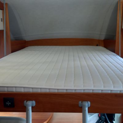 Lits transversal (90cmX190cm) à l’arrière et lit pavillon électrique (130cmX190cm) à l’avant.