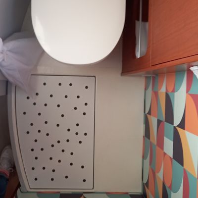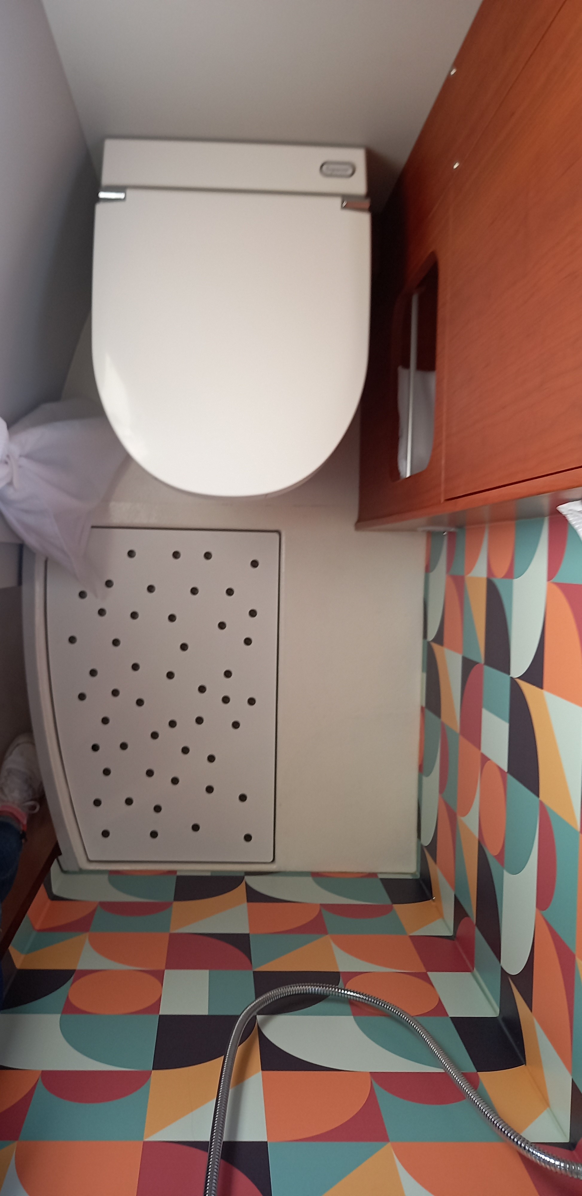 Salle d’eau avec toilette sèche à séparation TINY avec réservoir urine intégré 8L et bac à douche en polyester.