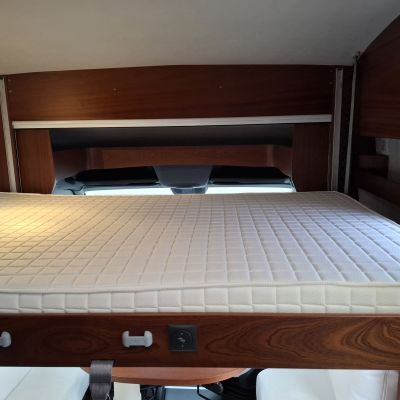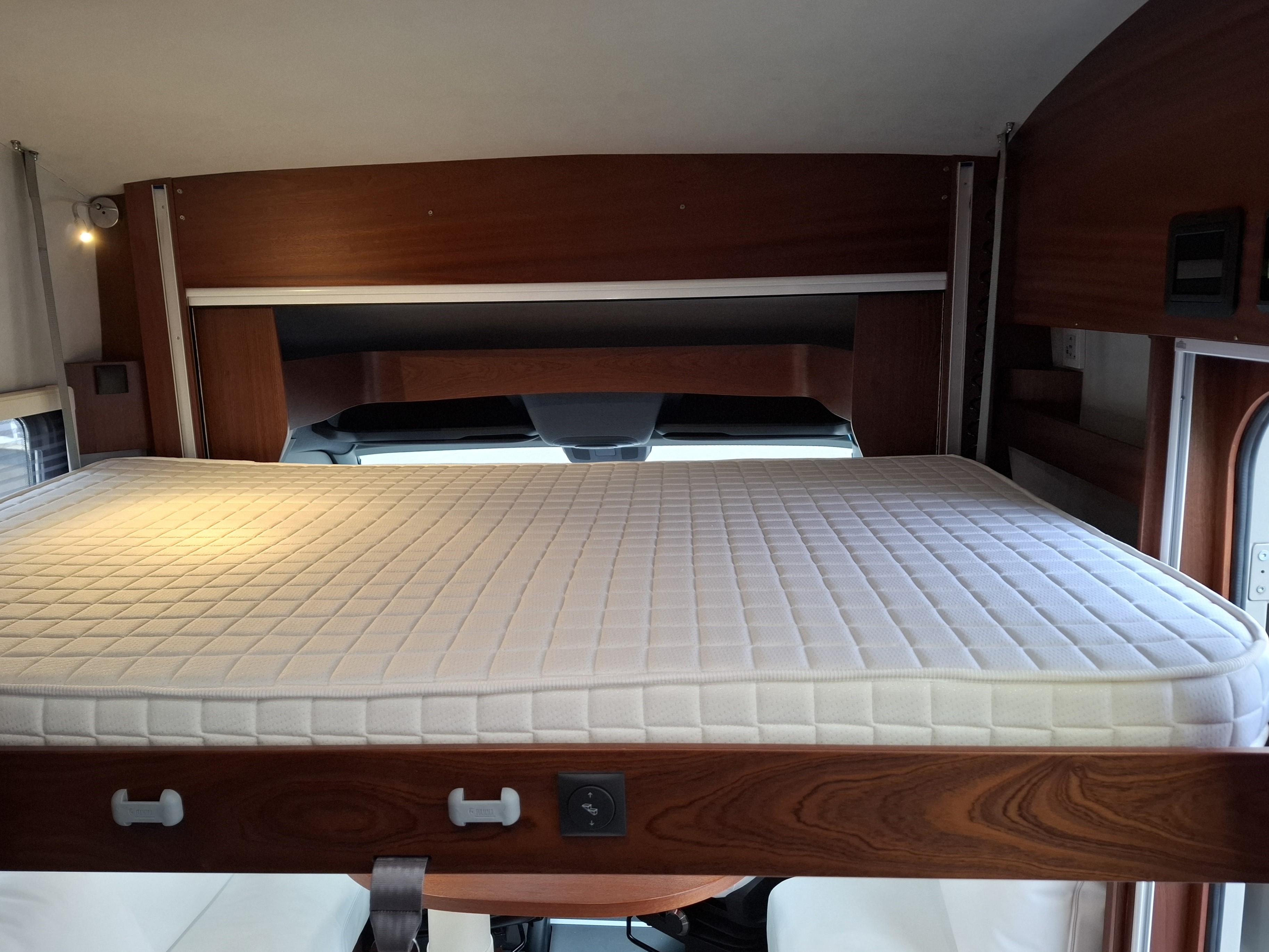 Lit transversal 2 personnes arrière (130 x 190) et lit pavillon avant (140 x 190).