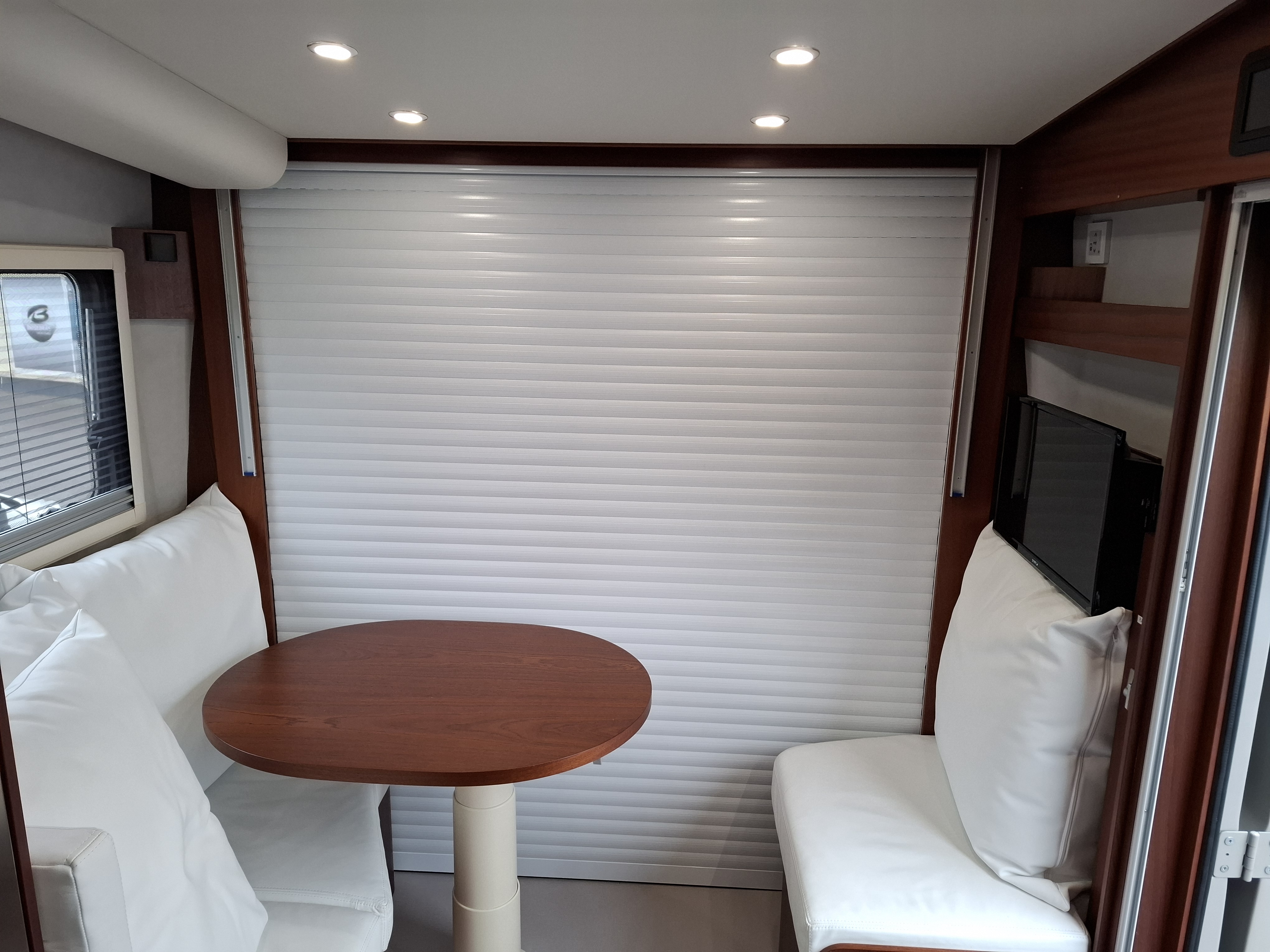 4 baies polyvision aéro, 3 lanterneaux ventilateur et extracteur 12V, moustiquaire de porte, éclairage à led.