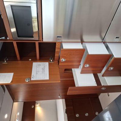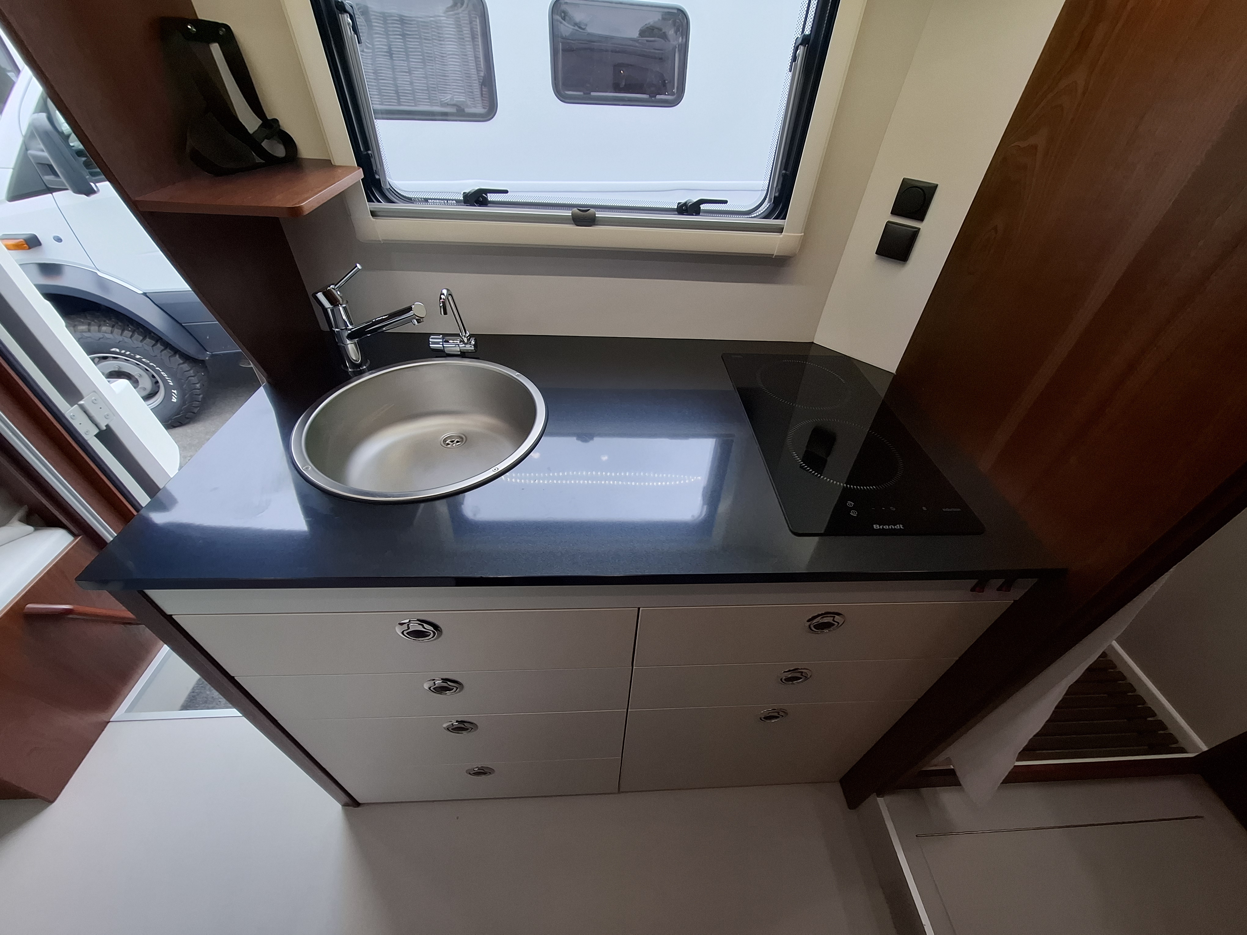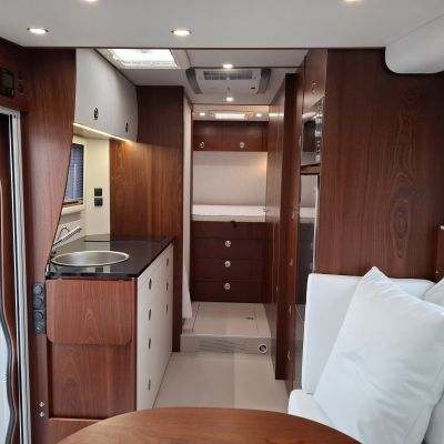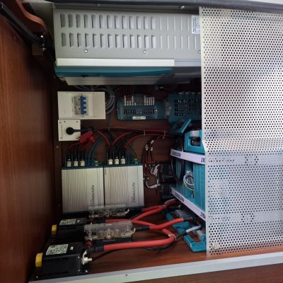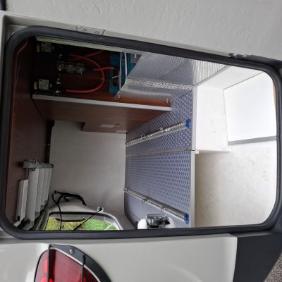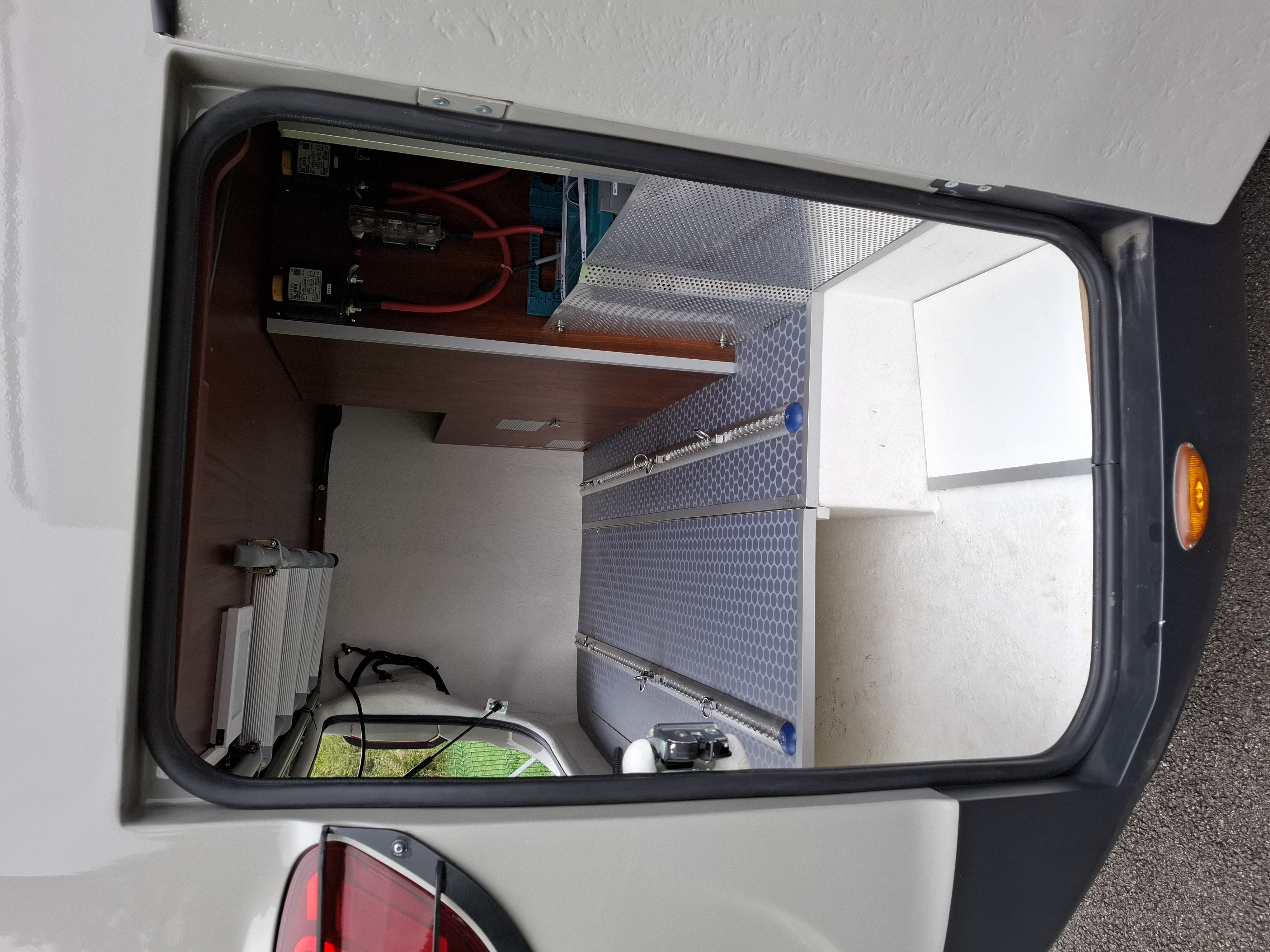 Chauffage Truma Combi D6 Cp Plus gasoil + kit altitude, installation électrique MASTERVOLT, MassCombi 3000W, 2 batteries lithium 200Ah, 2 panneaux solaire (105W et 150W), Transformateur 110V (USA), Réservoir d’eaux propres 300L et réservoir d’eaux usées 100L en polyester moulé dans la cellule, vidange des eaux usées par pompe de relevage, douchette pour l’extérieur dans la soute. Système de filtration KATADYN avec cartouche.