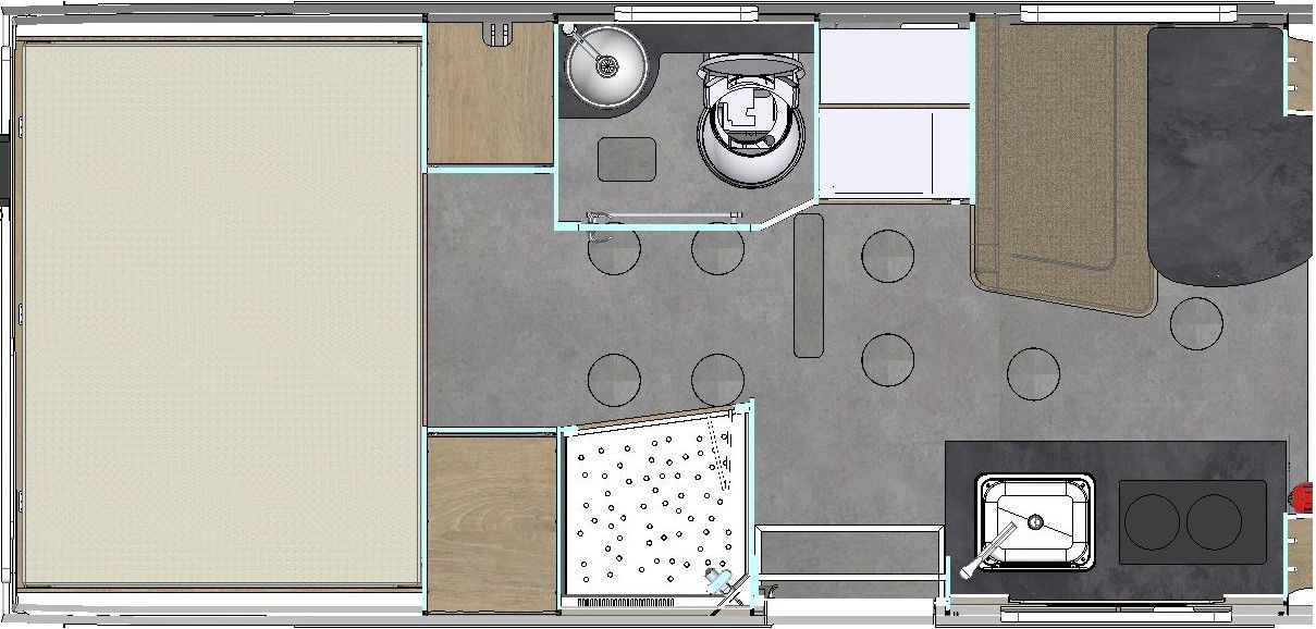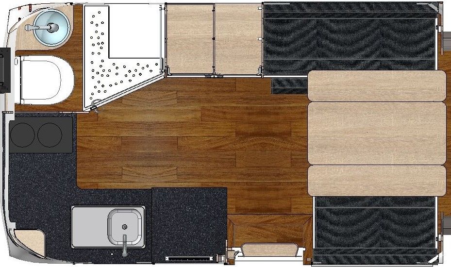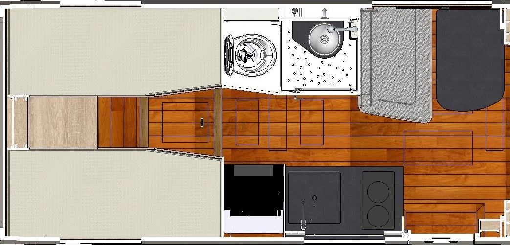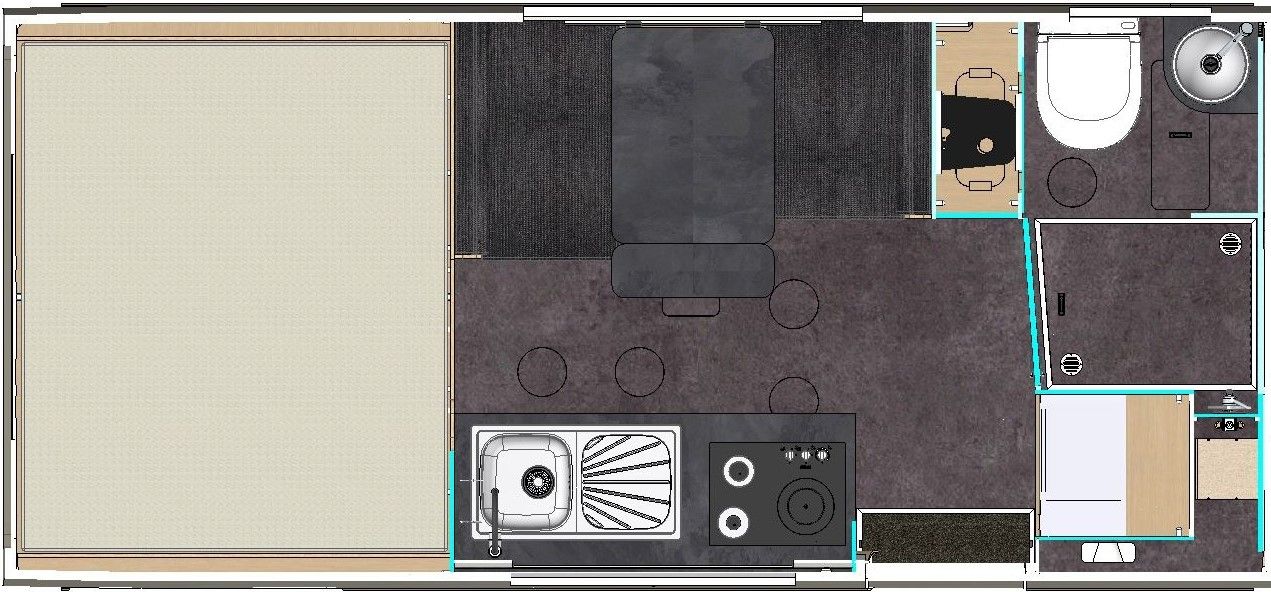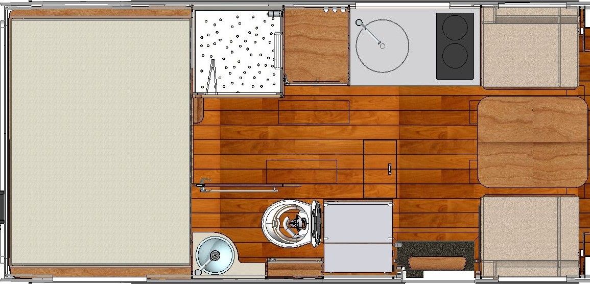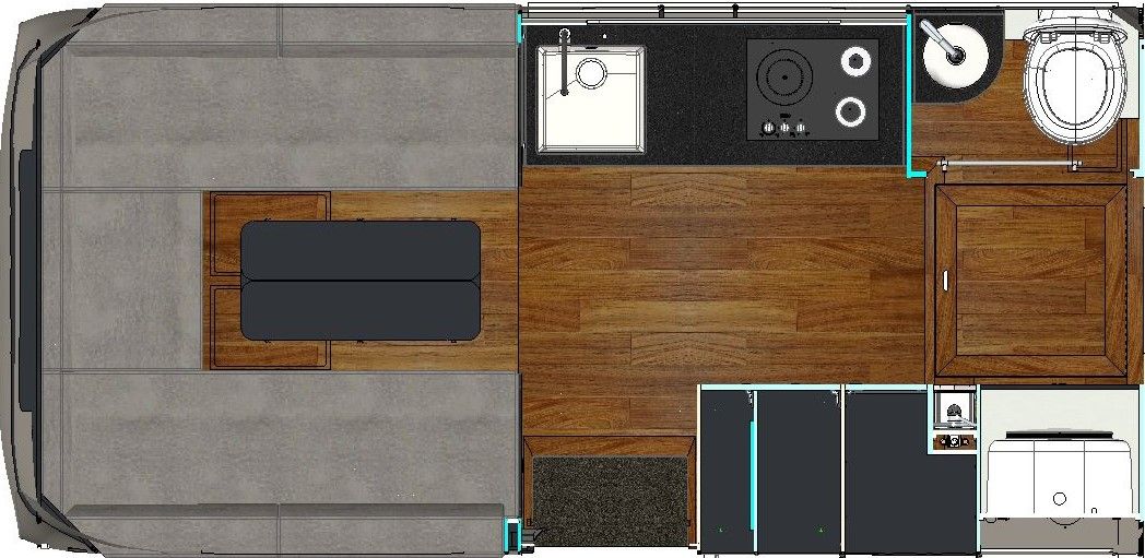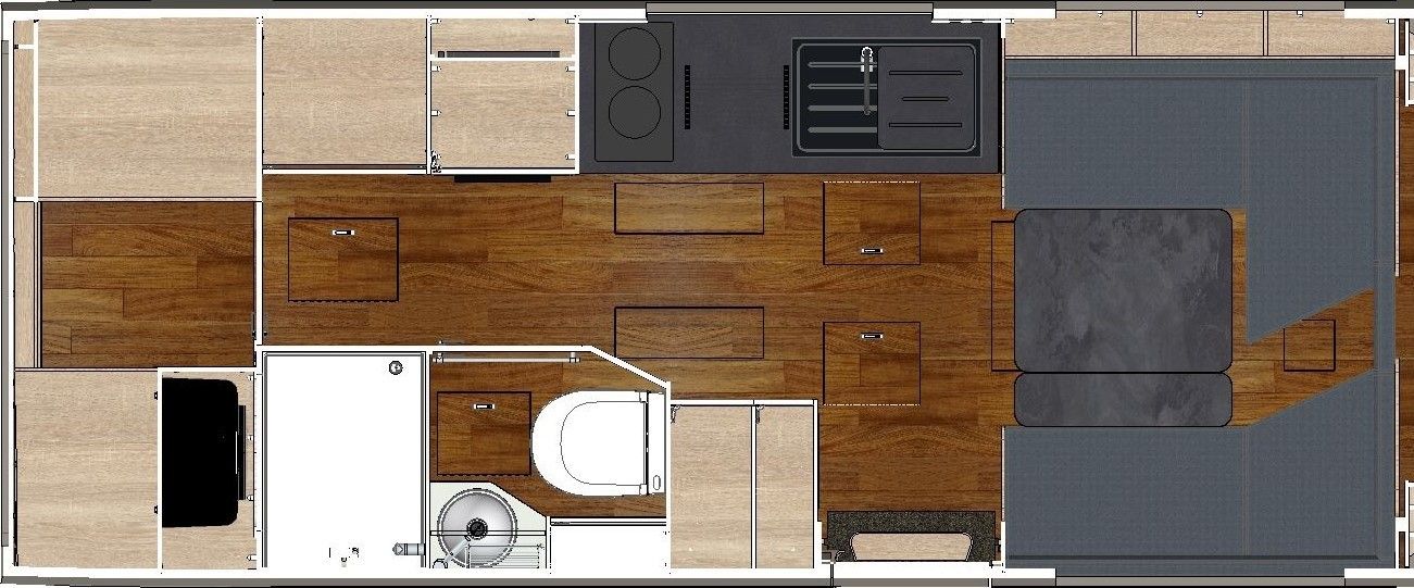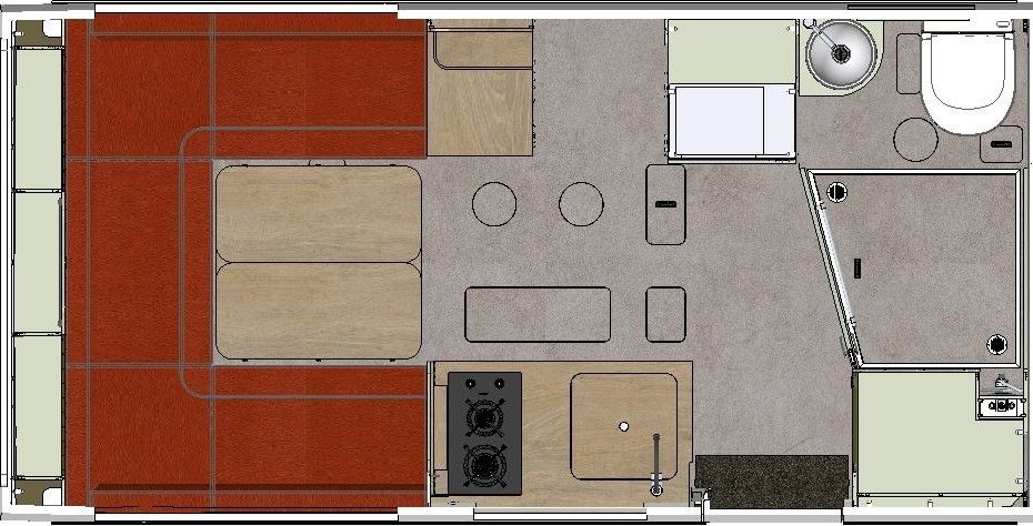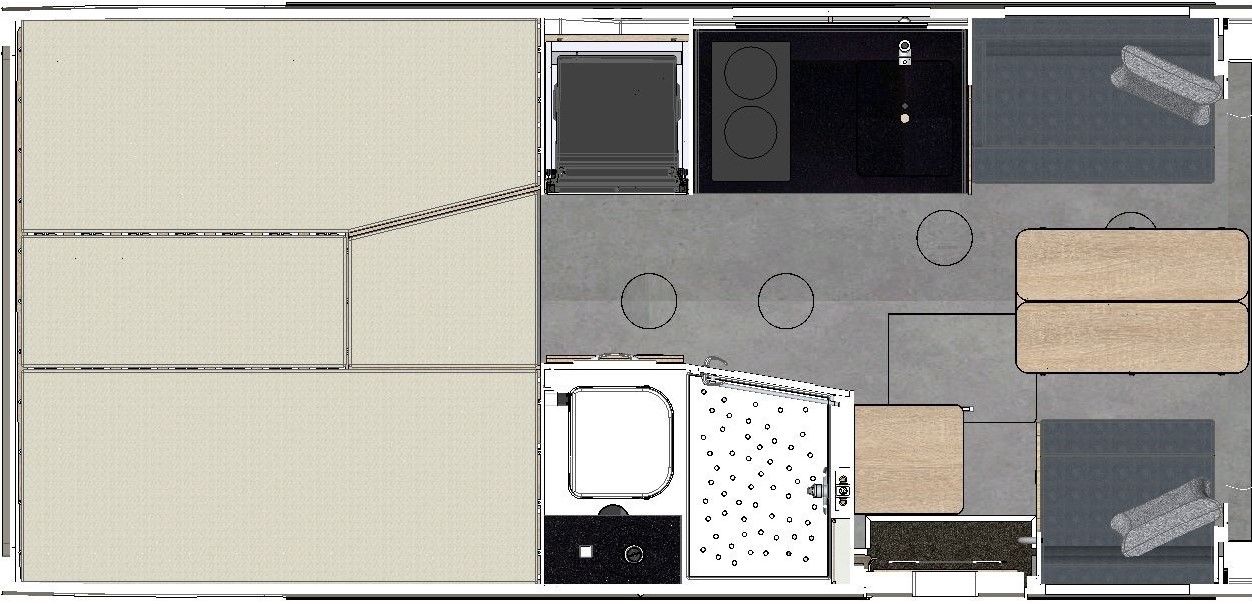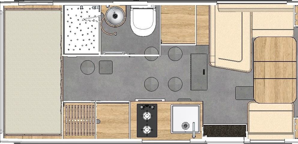 Découvrez ici une sélection de plans d’aménagement classés par taille de cellule. Ces plans sont proposés à titre d’inspiration : ils ne constituent en aucun cas des modèles définitifs. Chez Brisebras Agencement, chaque projet est entièrement personnalisé en fonction de vos envies, de vos besoins et des spécificités de votre véhicule.